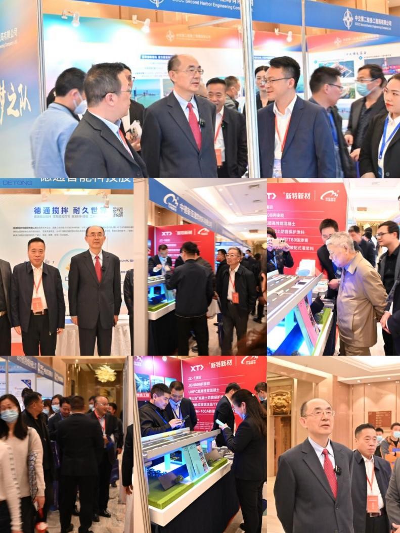 会议期间,陈政清院士、交通运输部专家委员会周伟主任等领导同参会代表在展览区域与展商进行咨询洽谈交流并合影留念,场面热烈。