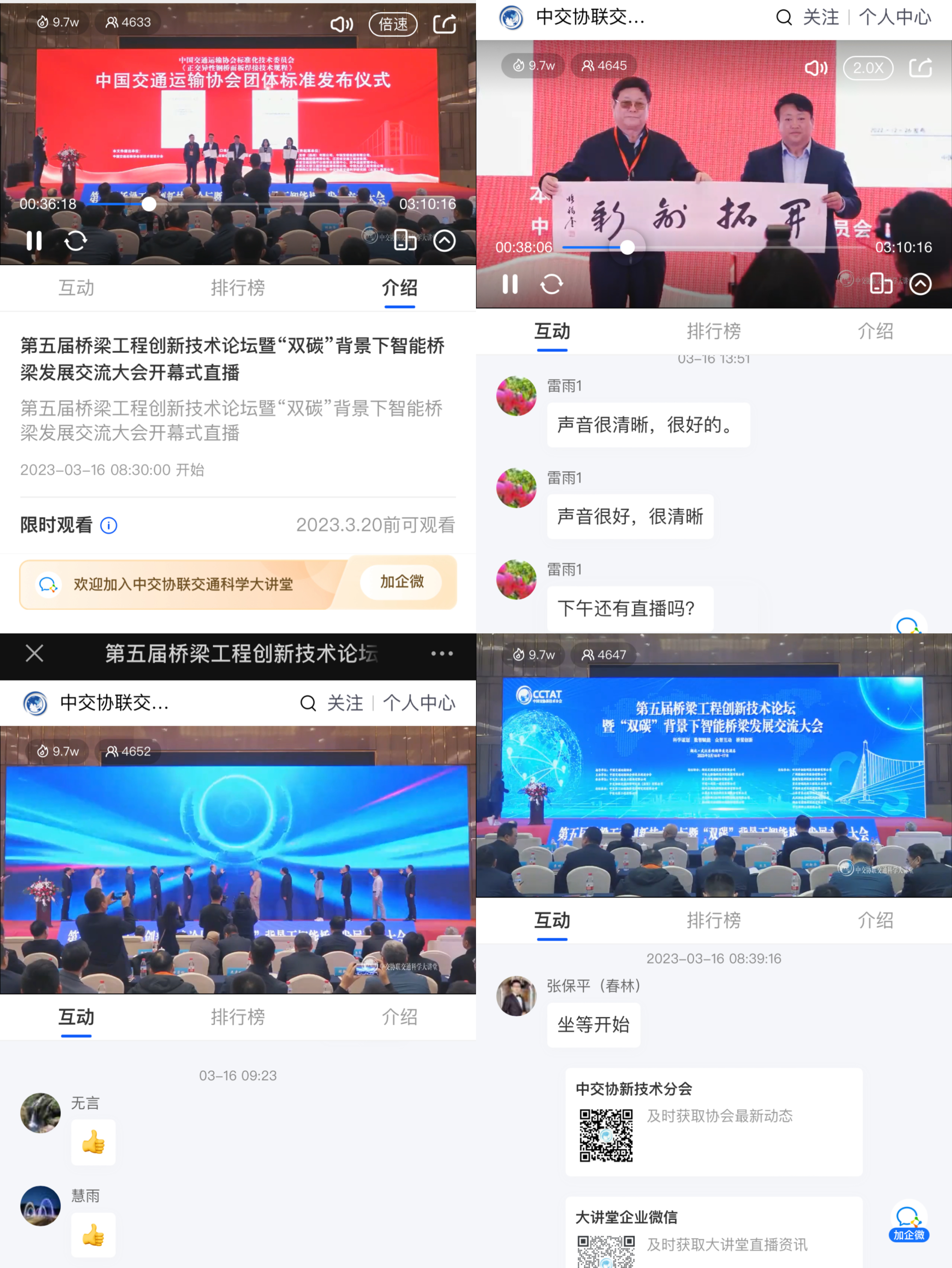为使本次大会召开的更加圆满,组委会特授权中交协联科技大讲堂对本次会议全程直播,同时对与会展商开展采访宣传报道。通过线上平台,将大会活动实况、文字解说、高清图片、精彩视频等结合起来,配以各种新媒体产品,串联起各类线下活动,全方位、多角度展现大会盛况。