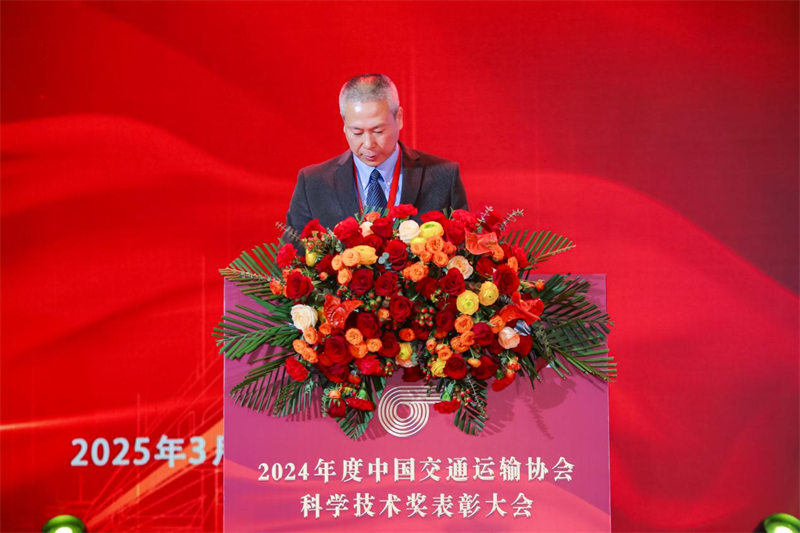 中国交通运输协会副会长兼秘书长、协会科技奖委员会副主任兼科技奖励办公室主任、交通运输部政策研究室原主任李刚宣读“2024年度中国交通运输协会科学技术奖”获奖公布通知。