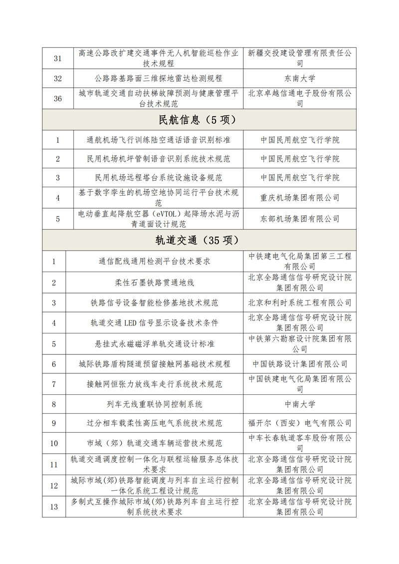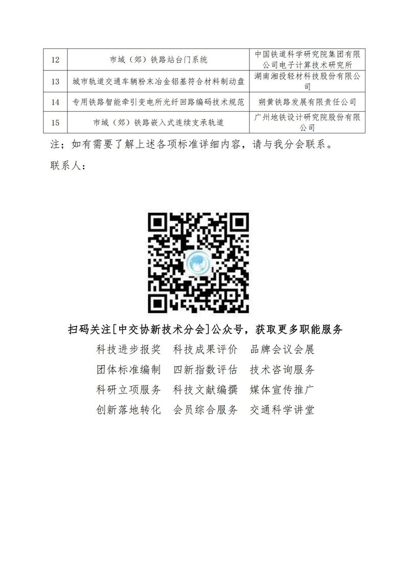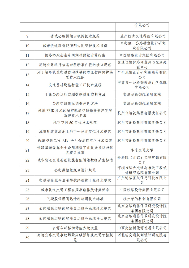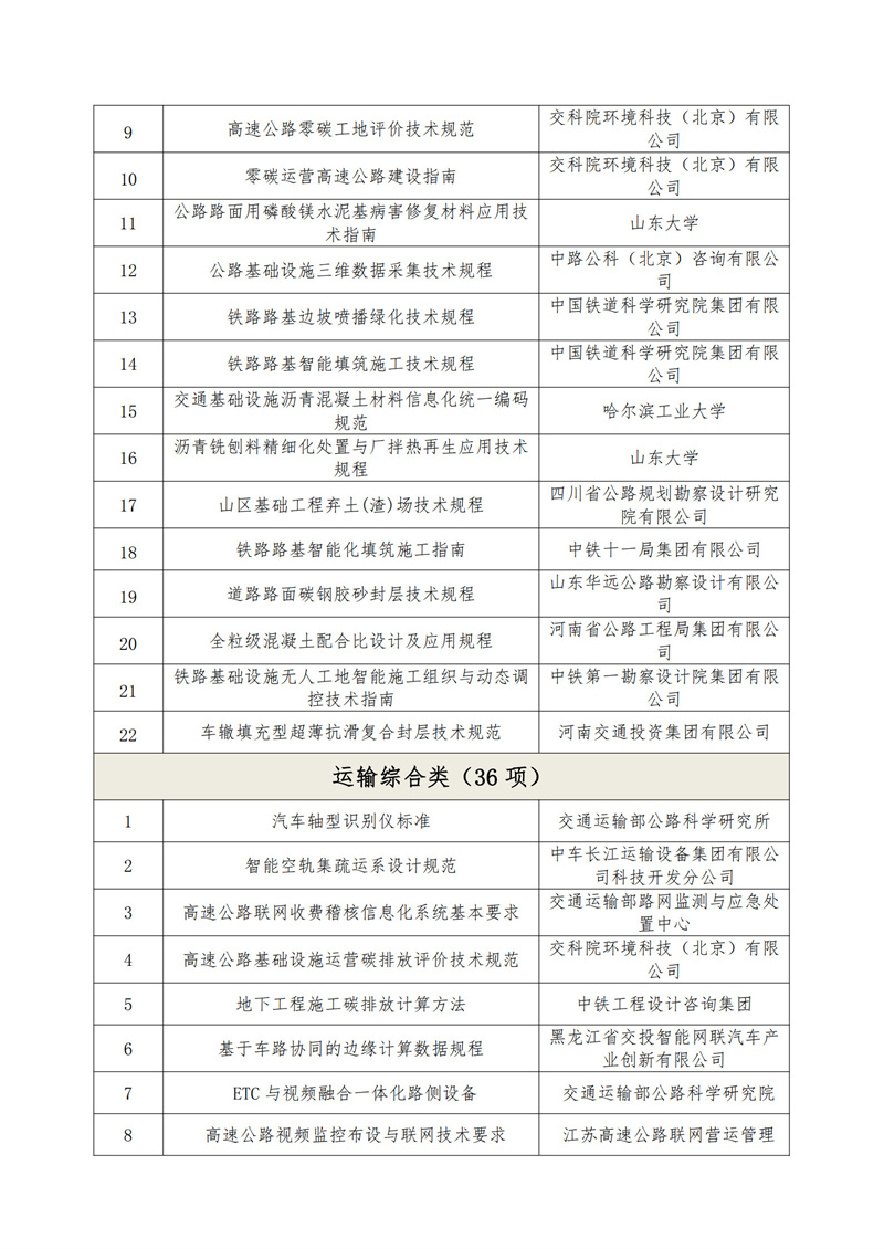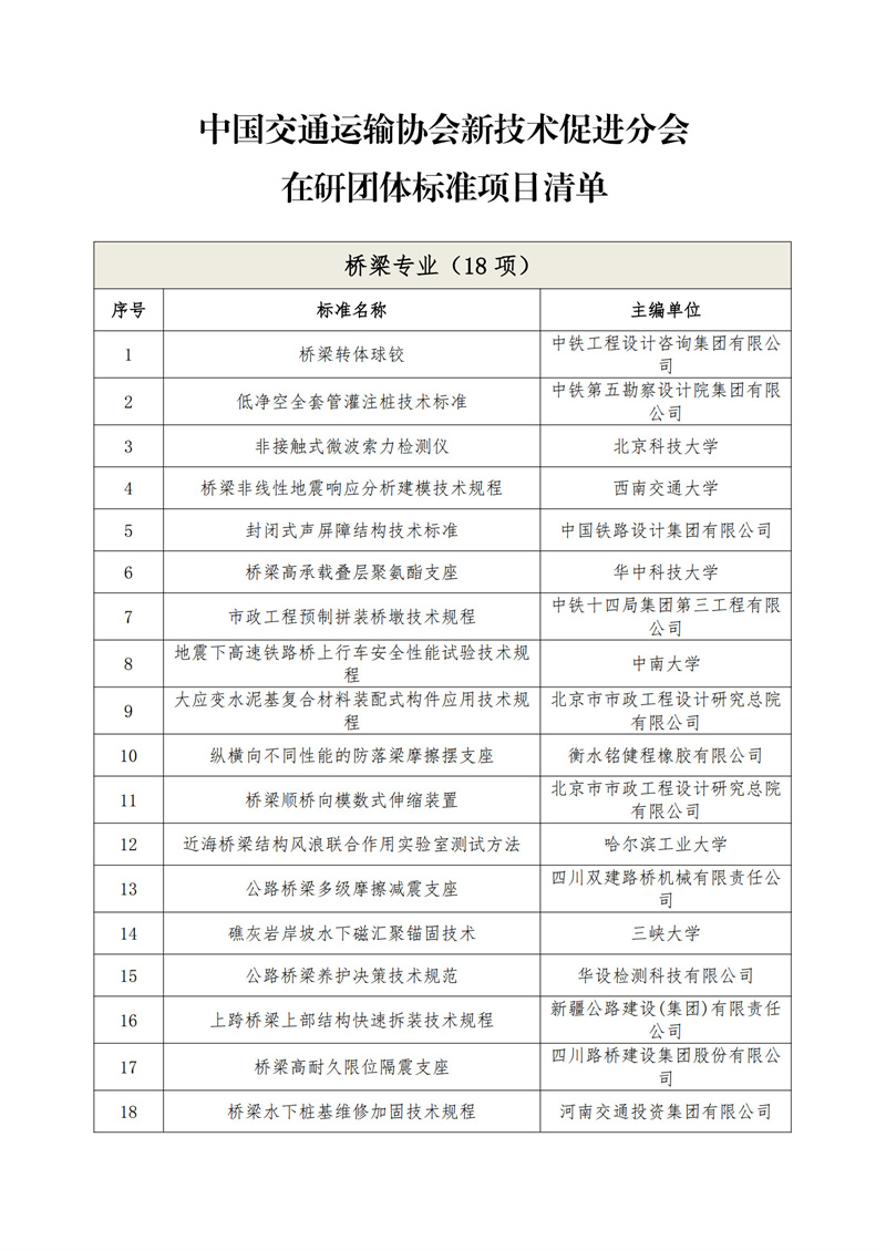 中国交通运输协会新技术促进分会在研团体标准项目清单